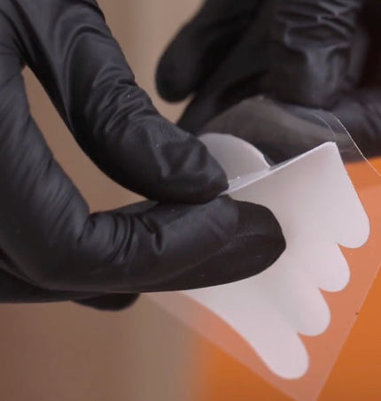 Let your client look up. Place the eye pads gently over the bottom lashes and make sure it's secure.